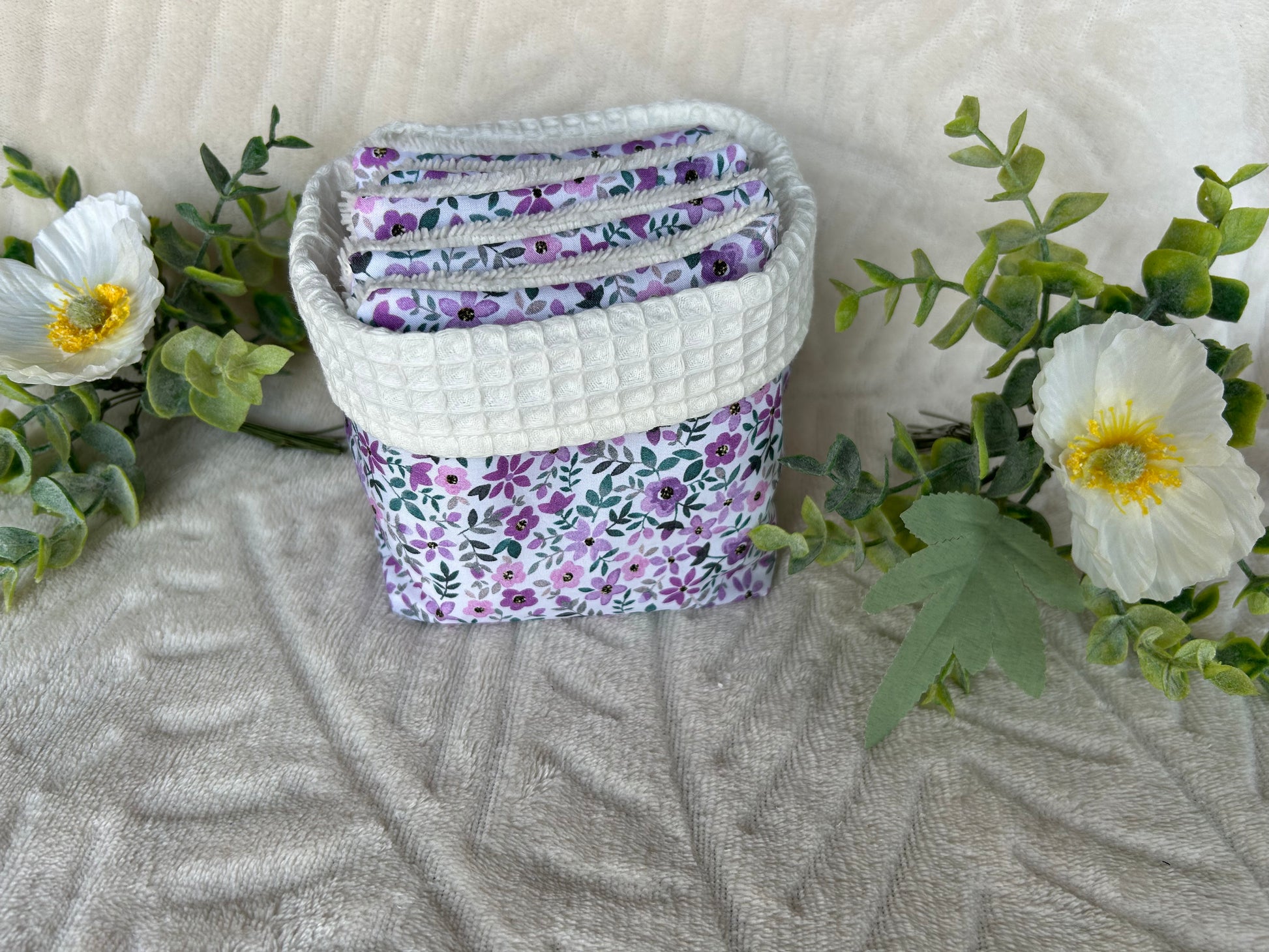 Panière et ses 5 cotons « fleur violette»