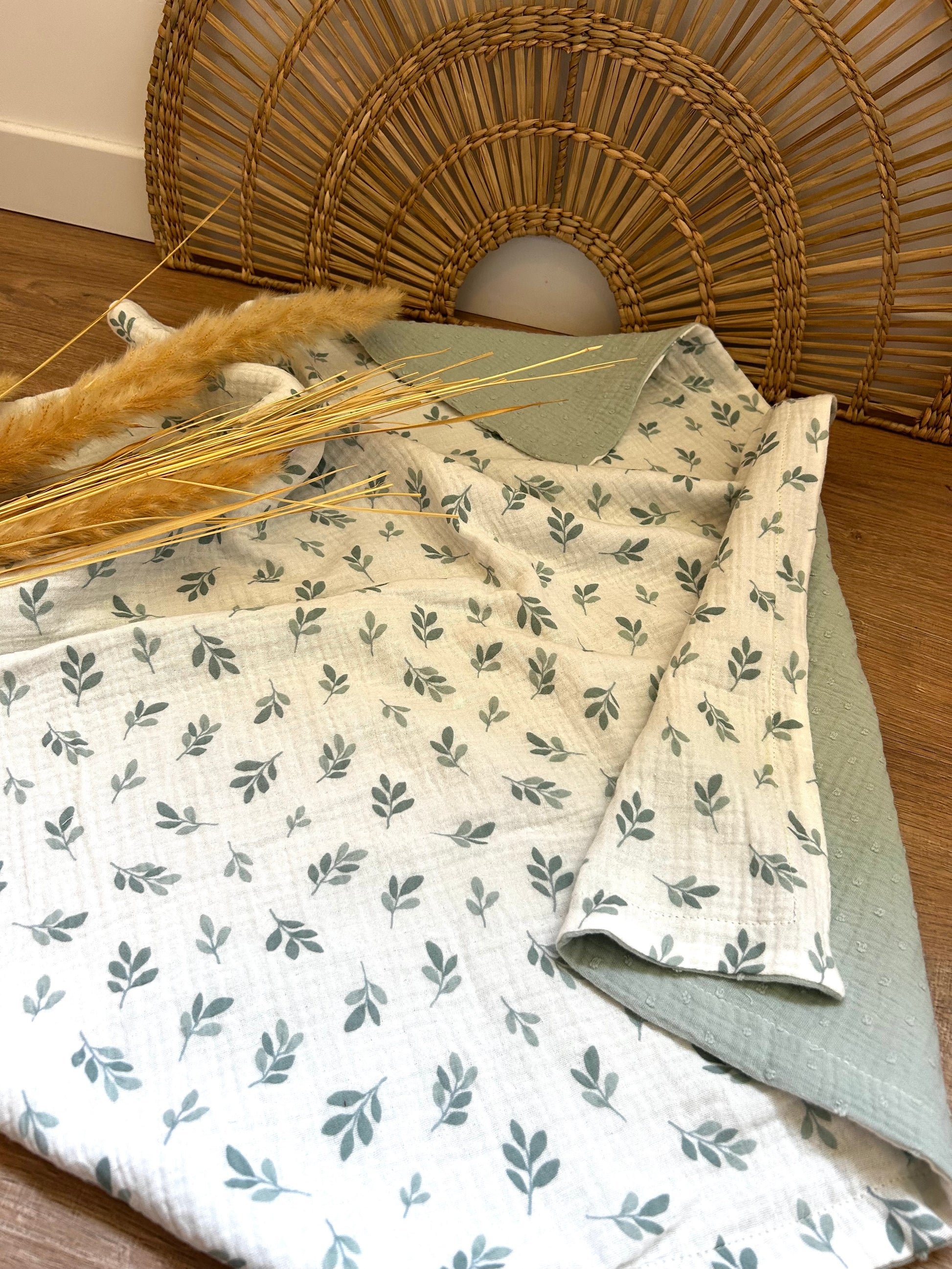 Douce couverture de naissance blé vert – env. 70x60 cm